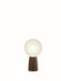 Battery-operated and rechargeable portable table lamp. The lamp features a white glass globe and has dimming touch control with 3000k (cool white). The integrated LED module specifically engineered & mounted in the base of the lamp produces ambient light. The Olimpia comes with an accessory lens to warm the color temperature to 2700k (warm white). Features LED light with satin opal glass diffuser Induction charging base included About 9 hours of illumination per charge Touch-dimming Suitable for indoor or outdoor use Charging time about 9 hours Specifications 200 lumens, LED/CRI>,80/120 volt/2.5W Switchable white 2700/3000K 10.2in height x 3in wide at bottom x 5.9in wide at top IP20 (bodyIP54) rating protection Painted aluminum fixture Weight 4 lbs. Instructions To recharge your Olimpia Pro table lamp, plug the charging cube provided into an outlet, then plug the USB connector from the charging cradle into the cube. Place the lamp on the charging cradle. The power button on the side of the lamp will glow red while charging and turn green once the charging cycle is complete. A full charge takes around 9 hours. The fully charged lamp may remain on the charging cradle without damaging the battery.